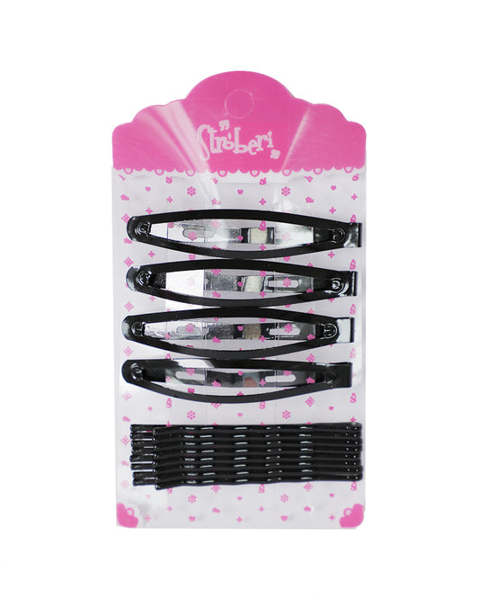 Stroberi Bobby Pin Snap Clip Set - Black